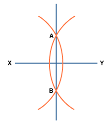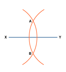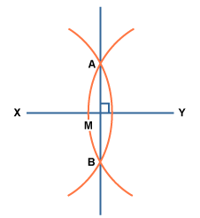 | The point M where the lines cross is the midpoint of XY. And AB is perpendicular to XY | Bisecting an angle |