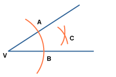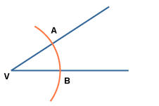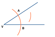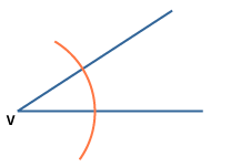 Place your compass on V and draw an arc that crosses both sides of the angle