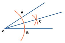 The line VC bisects the angle. Angles AVC and BVC are equal