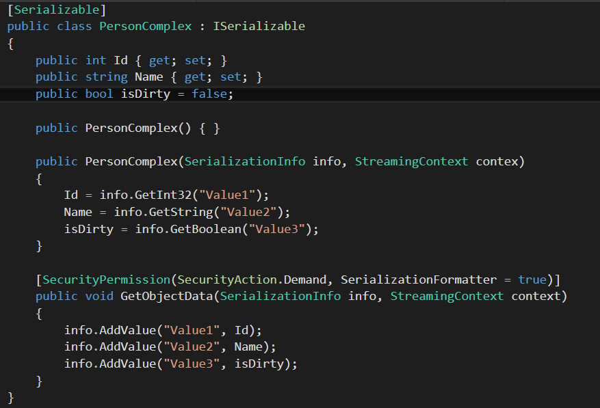 | exemplo de Implementing ISerializable (explicação nos próximos 2 cards) | |
