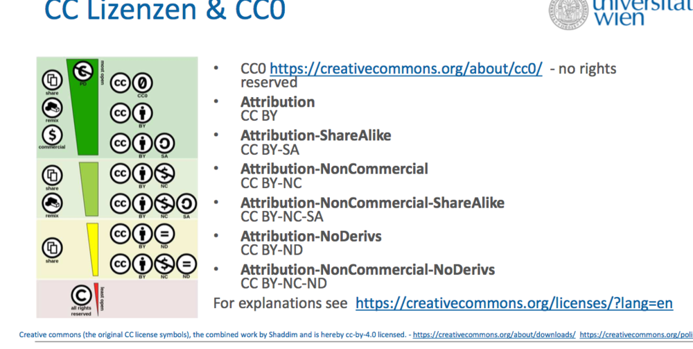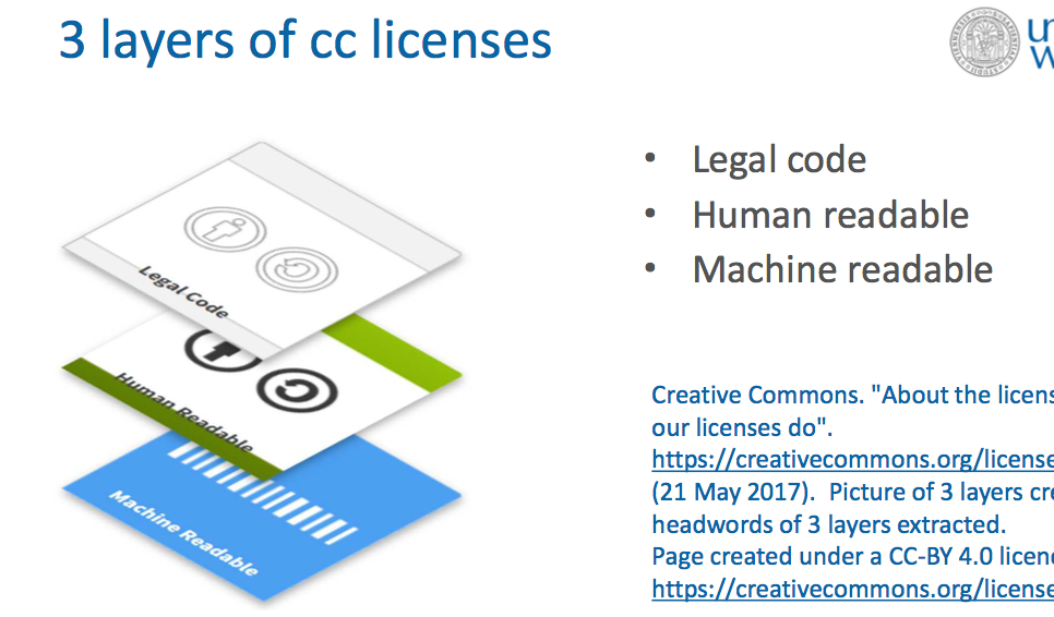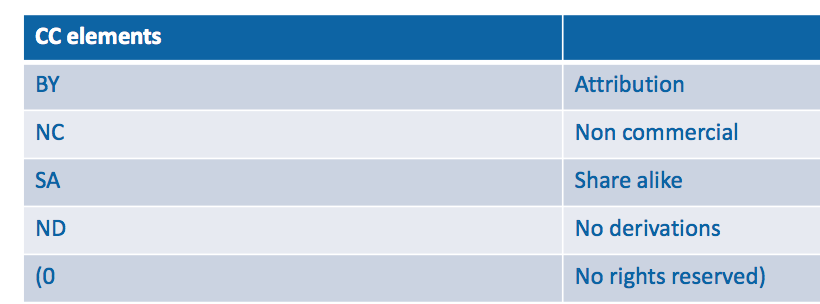| Creative Commons licenses: Attribution CC BY | Attribution CC BY "This license lets others distribute, remix, tweak, and build upon your work, even commercially, as long as they credit you for the original creation. This is the most accommodating of licenses offered. Recommended for maximum dissemination and use of licensed materials" (Creative Commons. "About the licenses. What our licenses do" |