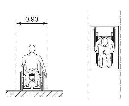 | Qual a largura para deslocamento em linha reta de pessoas em cadeira de rodas? | |