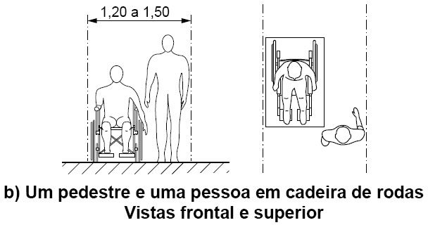 | Qual a largura para deslocamento em linha reta de pessoas em cadeira de rodas e um pedestre? | |