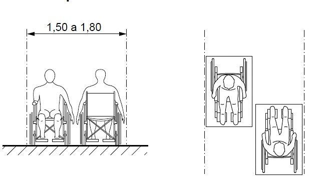 | Qual a largura para deslocamento em linha reta de duas pessoas em cadeira de rodas? | |