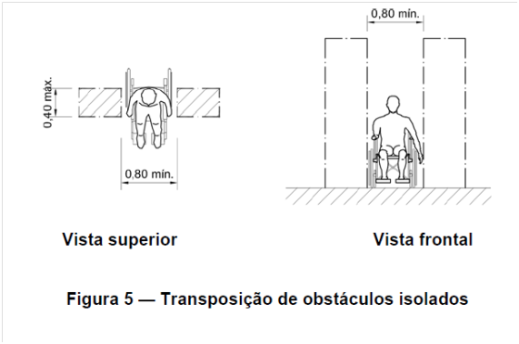 | Quais as dimensões para a transposição de obstáculos isolados por pessoas em cadeiras de rodas? |