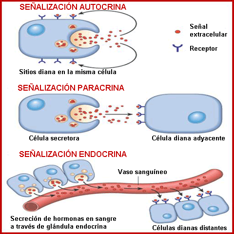 Señales son enviadas por medio de hormonas, neurotransmisores y factores de crecimiento.