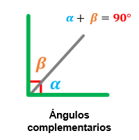Par de ángulos que sumados forman un ángulo recto. (90°)