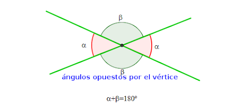 ángulos que se comparten el mismo vértice y cuyos lados configuran dos rectas que se cortan por el mismo vértice. Dos ángulos opuestos por el vértice tienen la misma amplitud, es decir, son iguales.