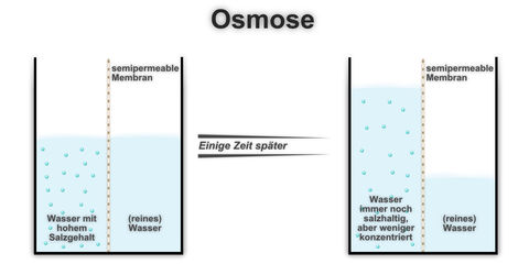 Osmose= ist die Spontane Passage von Wasser oder eines anderem Lösungsmittels durch eine Membran, die für das Lösungsmittel jedoch nicht die darin gelösten Stoffe durchlässig ist.