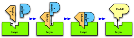 Enzyme=ist ein Stoff, der aus Riesenmolekülen besteht und eine biochemische Reaktion beschleunigen oder überhaupt auslösen kann. Fast alle Enzyme sind Proteine. Ihre Bildung in der Zelle erfolgt an den Ribosomen. Enzyme funktionieren nach dem Schlüssel - Schloss Prinzip. Ribosomen=sind kleine, aus Proteinen und rRNA bestehende, zelluläre Partikel.Anwendung= Enzyme haben eine nicht zu unterschätzende Bedeutung. z. B. 1. Bei der Verdauung, 2. Bei der Photosynthese, 3. Bei der Übersetzung der Erbinformation, 4. Bei der Lebensmittelherstellung, 5. Bei der Wirkung von Medikamenten, 6. Als Waschmittel und 7. in der Textilindustrie.