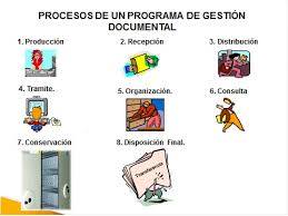 1. Producción 2. Recepción, 3. Distribución, 4. Trámite, 5. Organización, 6. Consulta, 7. Conservación,