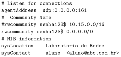 Onde o parâmetro 'rwcommunity ...' corresponde