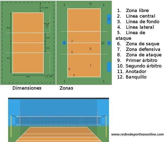 En el eje central del campo se sitúa una red de 1 m de ancho y sobre 9,5 a 10 m de largo,