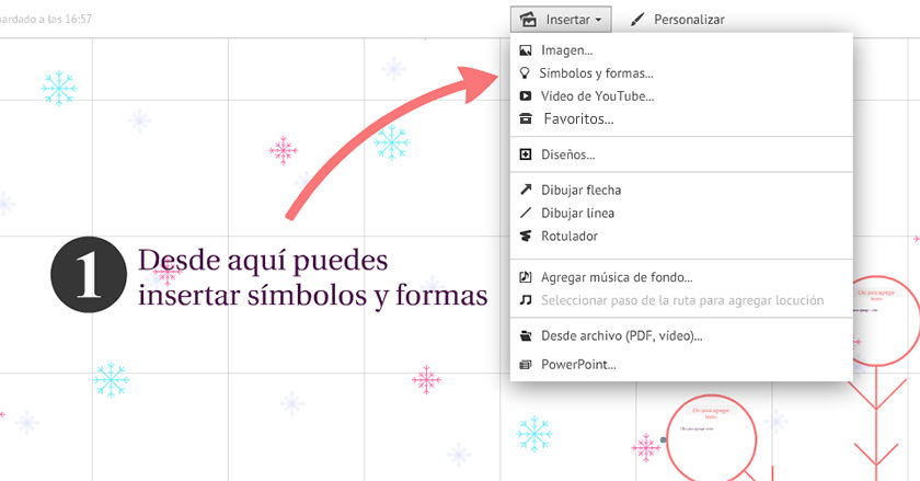 boton guardar: guarda el avance de tu presentacion