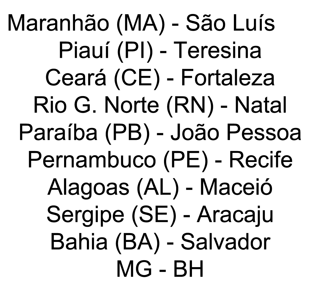 Pessoa, Maceió, Natal, Recife e Salvador