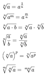 Reglas vistas en la actividad 6.2: "Expresar un radical como exponente fraccionario yviceversa"