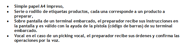 preparación de pedidos. Esta lista puede tomar varias formas: