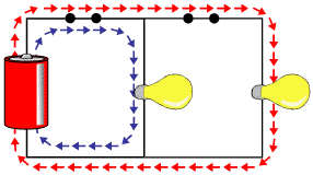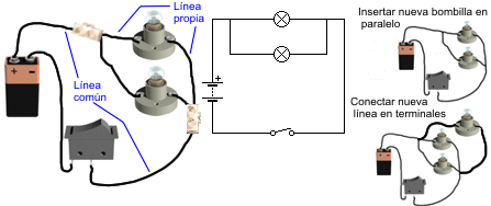 Un circuito en paralelo es aquel que dispone de dos o más operadores conectados en distintos cables. Dicho de otra forma, en ellos, para pasar de un punto a otro del circuito (del polo - al polo +), la corriente eléctrica dispone de varios caminos alternativos, por lo que ésta sólo atravesará aquellos operadores que se encuentren en su recorrido.