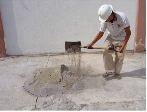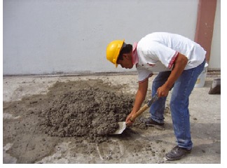5.-Mezcla el cemento y la arena hasta lograr un color