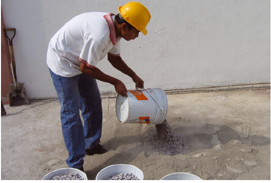 6.-Mezcla la grava junto con el cemento y la arena hasta