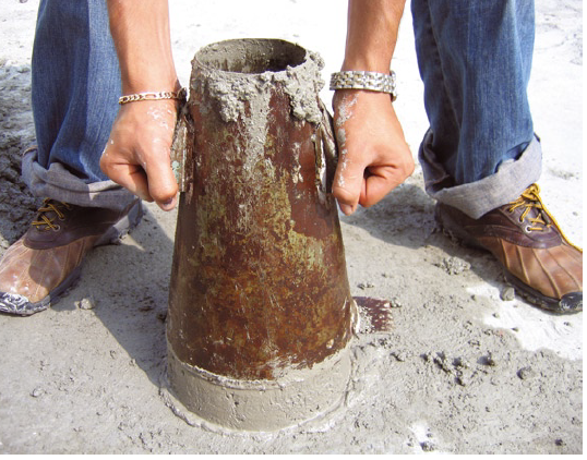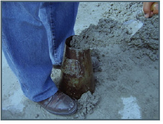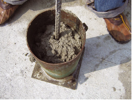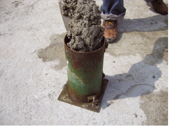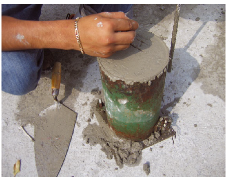 1.-Coloca 1/3 parte de concreto en el cilindro de prueba.