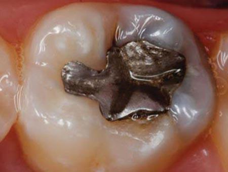 Coloração escura em toda a superfície de um dente