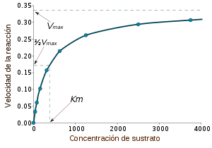 Consiste en que a medida en que aumenta la [S] de sustrato aumenta la velocidad hasta un punto en el cual se alcanza una velocidad máxima que no se puede superar a pesar de seguir aumentando la [S]