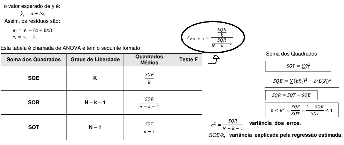 conta os graus de liberdade dos quadrados explicados edos quadrados dos resíduos da seguinte