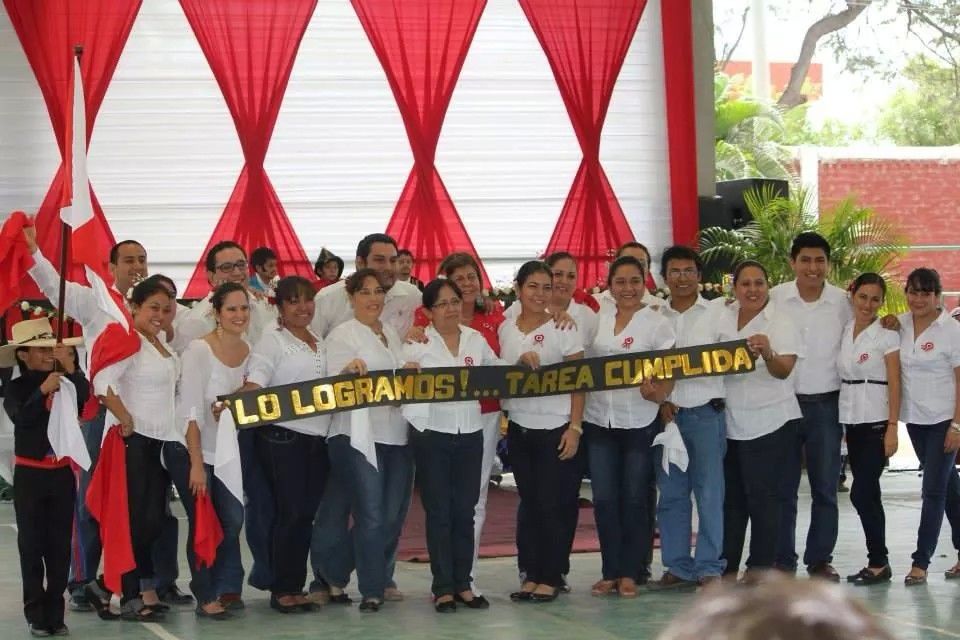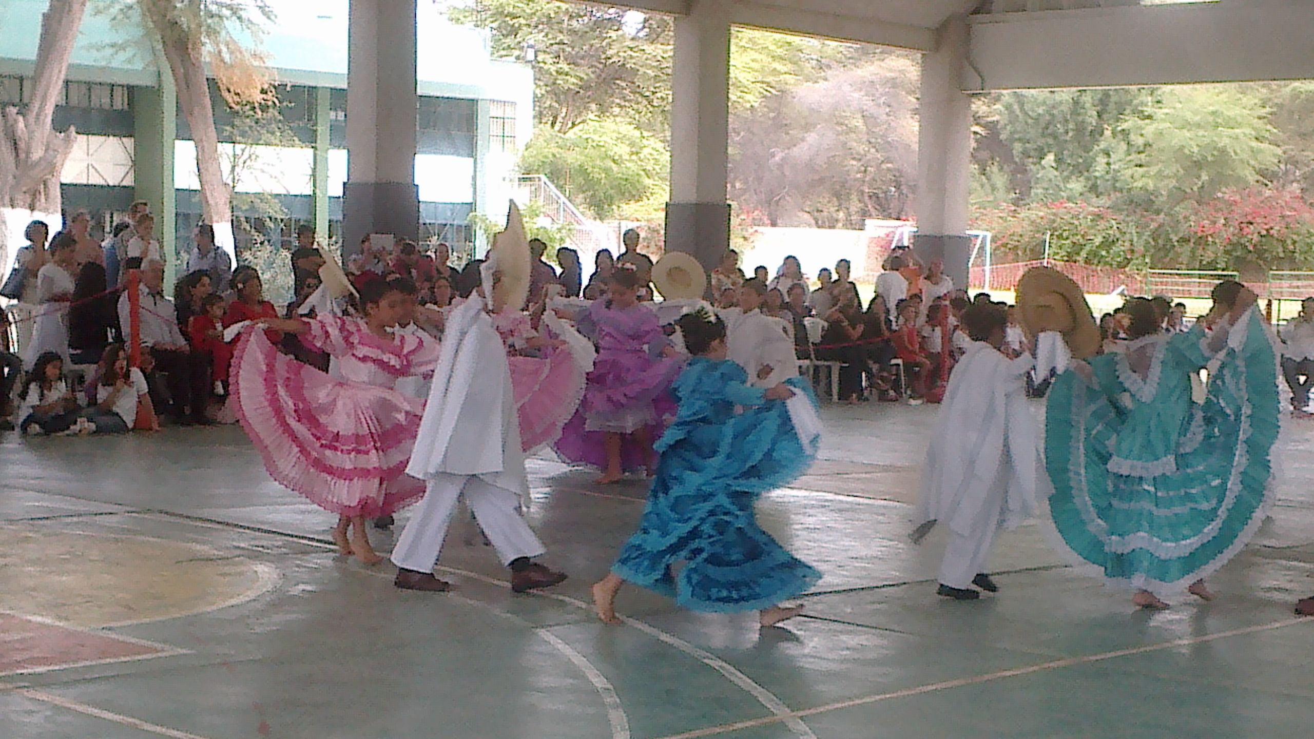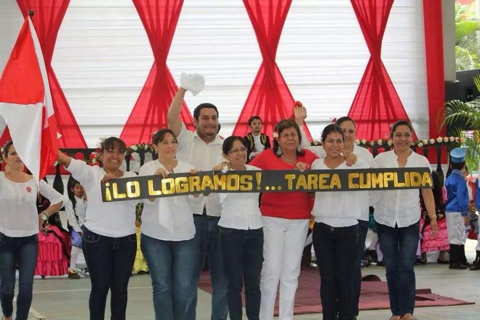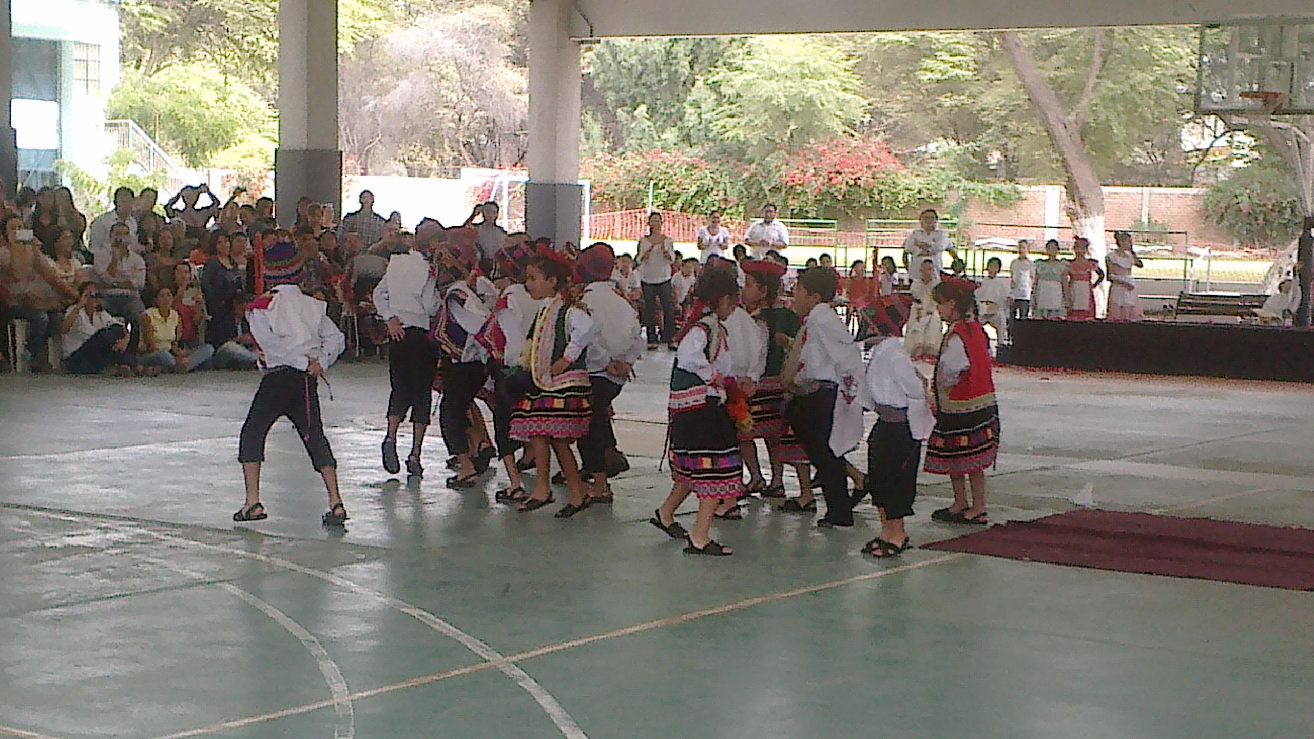 Alumnos, padres y docentes juntos celebrando nuestra independencia.