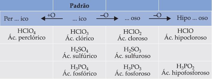 Estabelecemos um oxiácido padrão a partir do qual daremos nomes aos demais