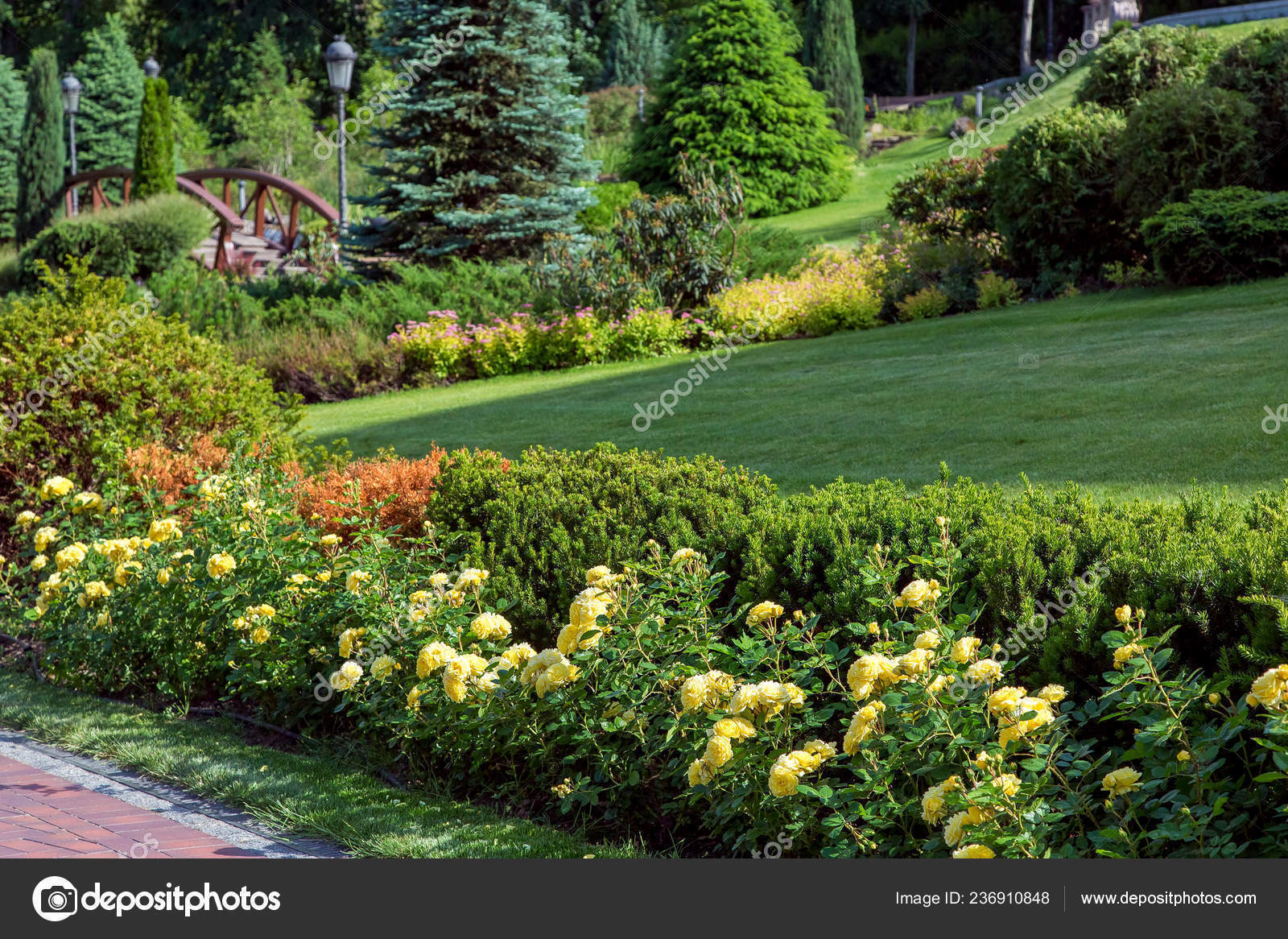 Depositphotos 236910848 Stock Photo Flower Bed Yellow Roses Garden (image/jpeg)