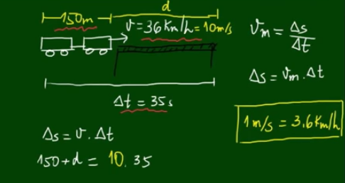 Um trem de 150 m de comprimento atravessa uma ponte em 35 segundos. A velocidade do trem é