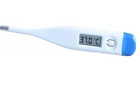 es un termometro que contiene una pantalla digital que dice la temperatura sin ningun liquido.