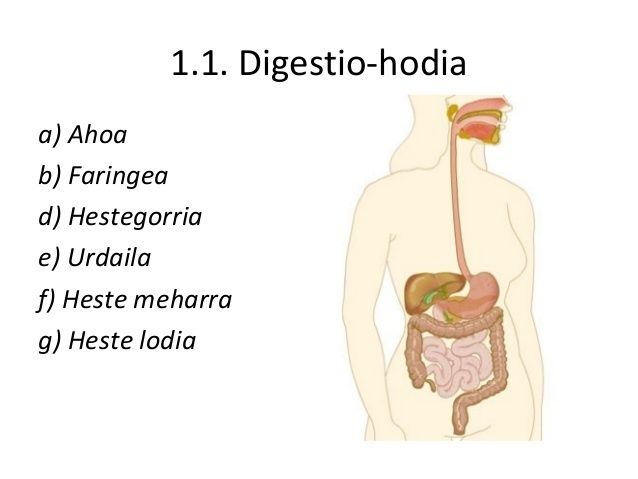• - Digestio handia 10 eta 12 metro artean ditu. - Gorputza 1'5 litro sartzen dira eta jaten baduzu bikoitia. - Elikagaiak 3/4 ordu urdailean. -Mearrean elikagaia denbora asko pasatzen dira. - Heste lodian orduak edo egunak. - Gibela 1'6 Kgr ditu, handiena da.