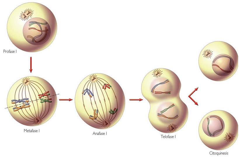 Hay un entrecruzamiento en los genes y el proceso se repite dos veces sin la interfase