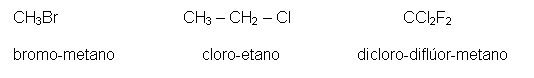 nomenclatura = cadeia + nome do halogênio