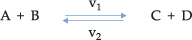 v2 (reação inversa) é igual a zero, porque C e D ainda não foram formados.