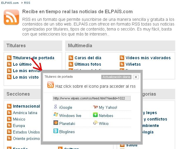 debe reconocer el icono dar clic en agregar un RSS feed y copiar la