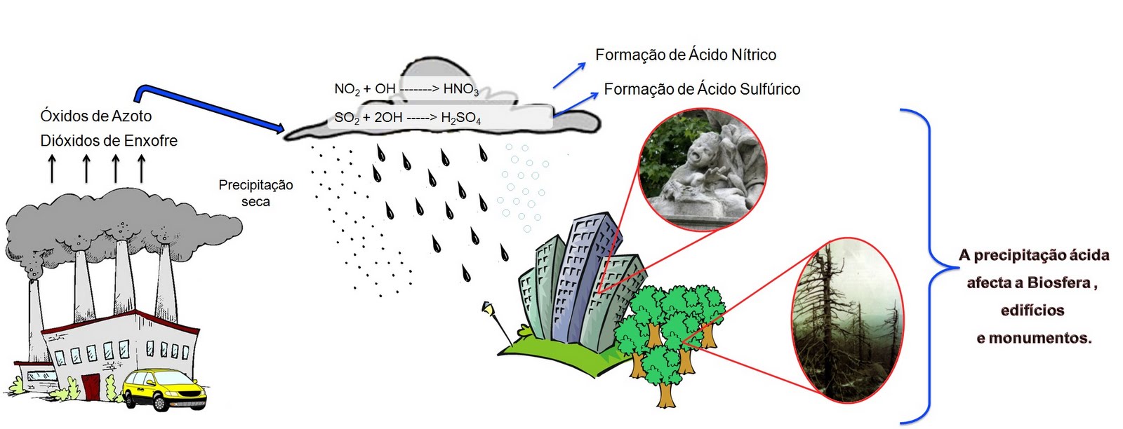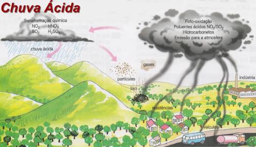 os ácidos causadores da chuva ácida nem sempre caem onde são produzidos, pois o vento freqüentemente