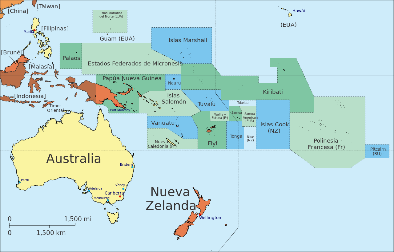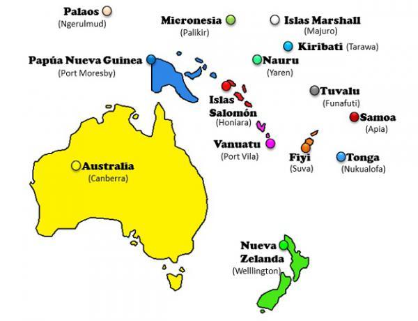 son seis mapas de oceania de ubicacion, division politica, hidrografia, fisiografia, climas y economia