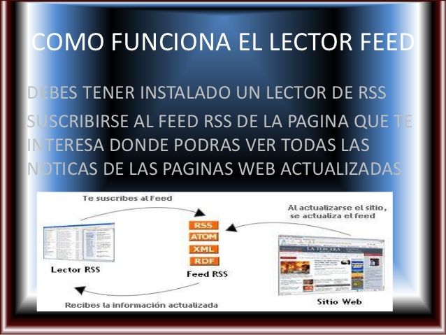 1. Es una forma muy sencilla de recibir, directamente en un ordenador o en una página web online (a través de un lector RSS) información actualizada sobre las páginas web favoritas, sin necesidad de tener que visitarlas una a una.