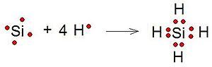 reacción de átomos de hidrógeno y silicio en modelo de Lewis