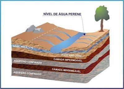 Nestes reservatórios, a água subterrânea está confinada sob uma pressão superior do que a pressão atmosférica