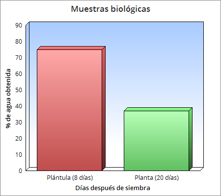 Peso fresco: 1,6 Peso seco: 1,0 % de agua: 37,5
