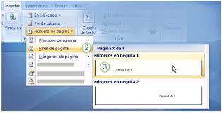 1. ♥principio de pagina ♥final de pagina ♥margenes de pagina ♥posicion actual ♥formato del numero de pagina ♥quitar numeros de pagina