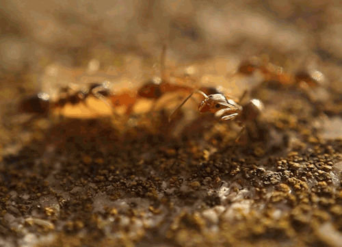 Cuando una hormiga quiere atraer la atención de alguna otra, palpa con sus antenas la cabeza de la compañera.