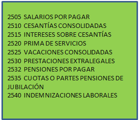 colectivos, tales como: salarios por pagar, cesantías consolidadas, primas de servicios, prestaciones
