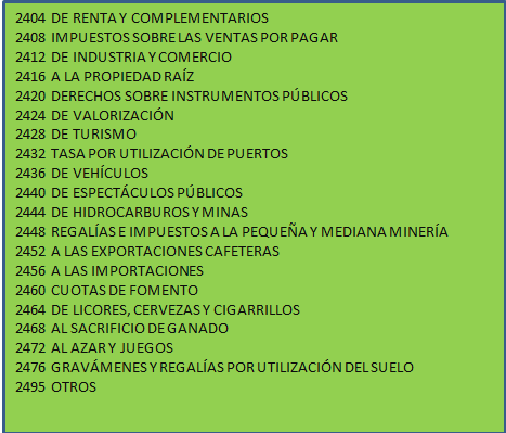 o participaciones por pagar, retención en la fuente, retenciones y aportes de nómina, cuotas por devolver y