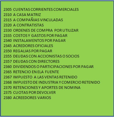 Comprende el conjunto de cuentas que se derivan de obligaciones a cargo del ente económico,