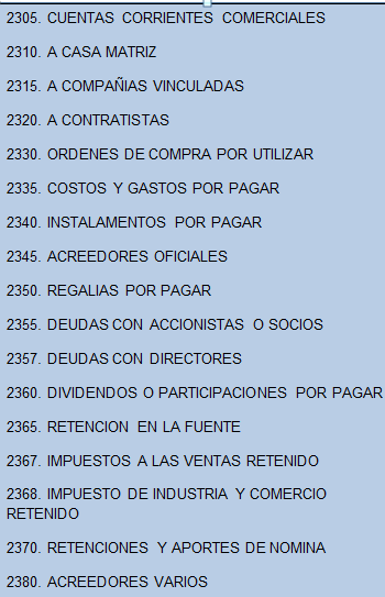 instalamentos por pagar, acreedores oficiales, regalías por pagar,